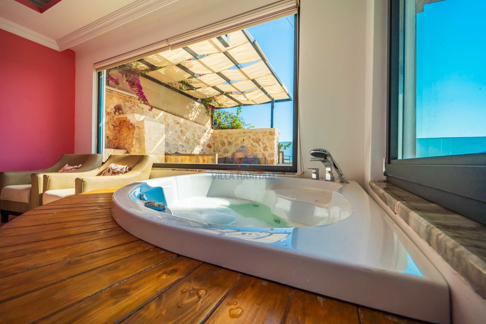 Villa Algı,1 yatak odalı 2 kişi konaklama kapasitesine sahiptir. Kalkan Kördere mevkiinde yer almaktadır.Deniz manzaralı ve jakuzili villalar katogorisinde yer alan tatil villamızda konforlu bir tatil geçirmeniz adına her detayı düşünülerek dekore edilmiştir.