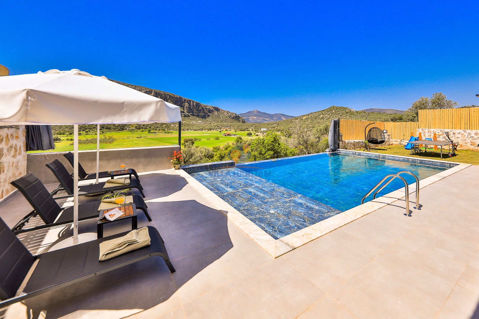 Villa Egemen, 2 yatak odalı 5 kişi konaklama kapasitesine sahiptir. Kalkan Ulugöl mevkiinde yer almaktadır. Geniş bahçeli aktiviteli çocuk oyun alanlı ve doğa manzaralı villalar katogorisinde yer alan tatil villamızda konforlu bir tatil geçirmeniz adına her detayı düşünülerek dekore edilmiştir. Özel havuzu geniş bahçesi ve salıncağı mevcuttur.