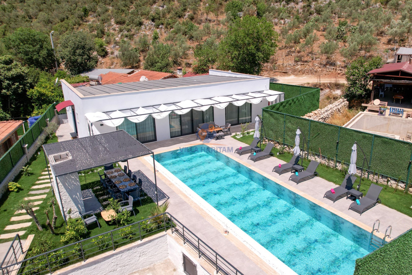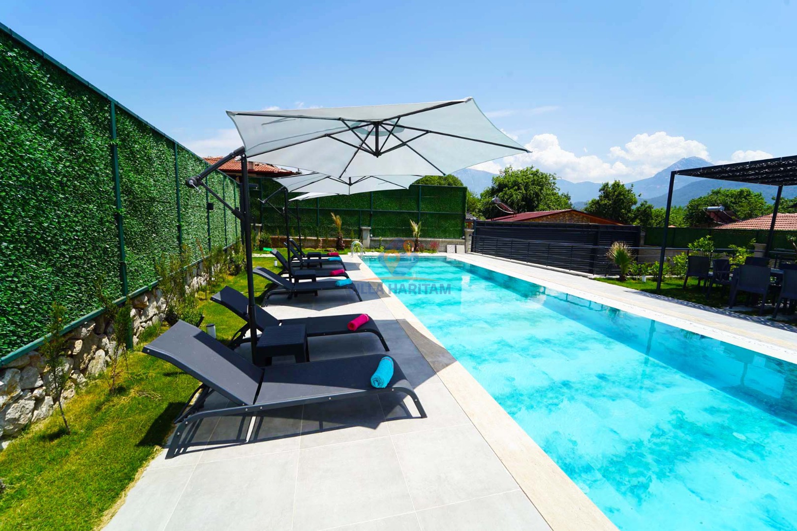 - Korunaklı havuz bahçe